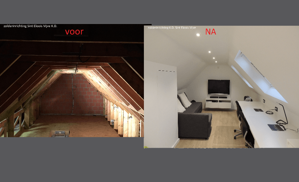 Een zolder als stoffige opslagruimlte heeft zijn nut. Een volledig afgewerkte en bruikbare zolder heeft veel nut. Of u nu op zoek bent naar meer ruimte, meer privacy, een extra kinderkamer, een studio voor je inwonende ouder of kind, een ontspanningsruimte of extra werkruimte, de oplossing ligt mogelijk boven uw hoofd.